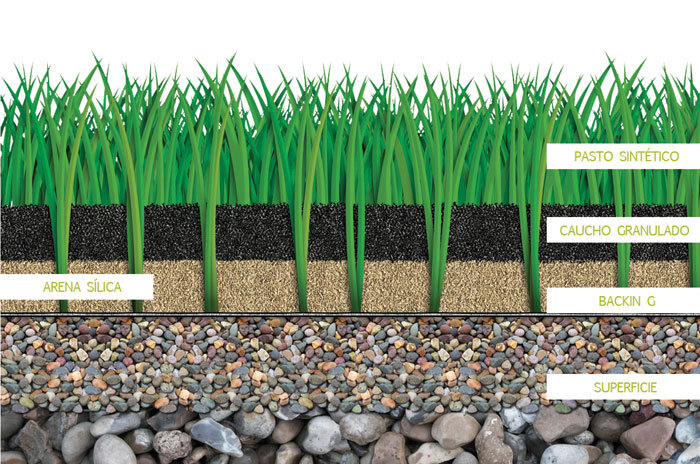El pasto sintético es la solución ideal para quienes buscan una cancha duradera, segura y de bajo mantenimiento. Su sistema de relleno con arena sílica y caucho amortigua impactos y reduce el riesgo