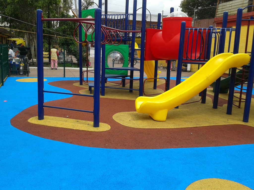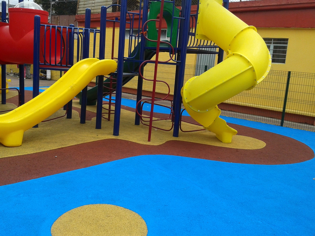 Delegación Venustiano Carranza: Estamos instalanco Piso de Caucho Colado en Sitio en 20 parques públicos.